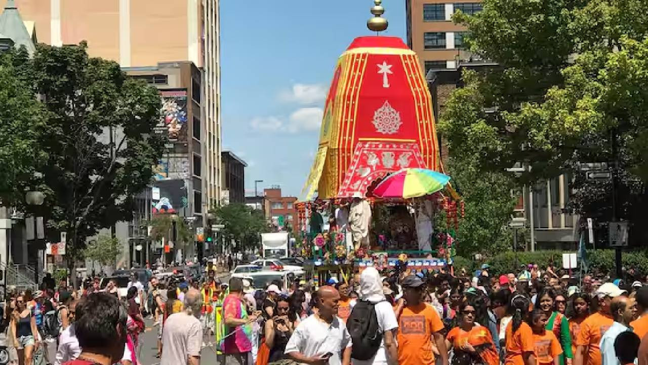 International News: Jagannath Rath Yatra was being taken out on the streets of Toronto on Sunday. Devotees were singing bhajans and the atmosphere was completely devotional. Meanwhile, someone started throwing eggs from a nearby building. The eggs fell on the road and near the people. No one was hurt, but the atmosphere got spoiled. This incident was recorded on camera and went viral on social media.