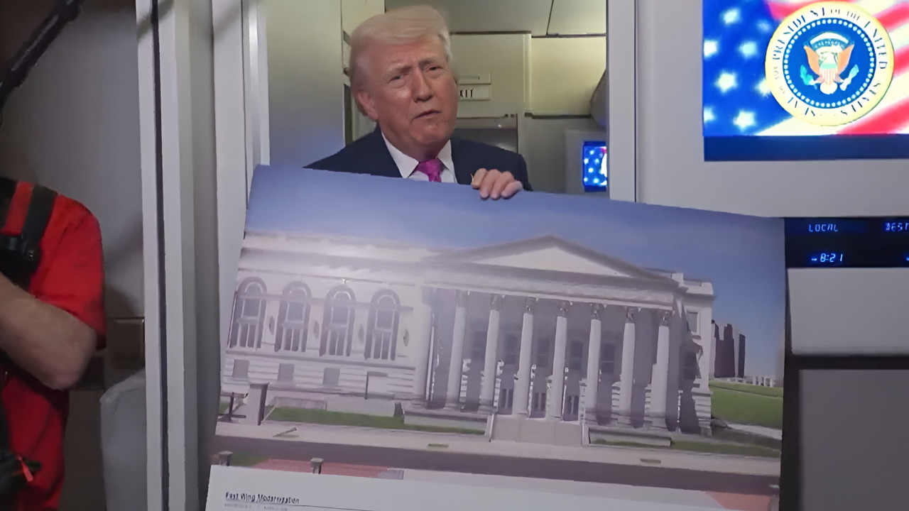 Trump moreover showed a photo of the ballroom design, which replaces the original East Wing and said that the new space is "almost a twin to the White House."