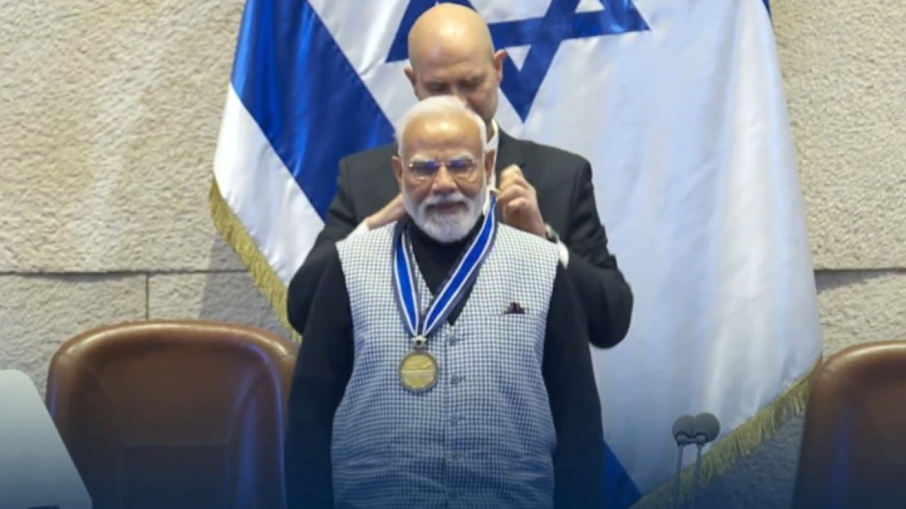 The medal was conferred by Knesset Speaker Amir Ohana in recognition of PM Modi’s unrenowned contribution through his personal leadership to strengthen strategic relations between India and Israel.