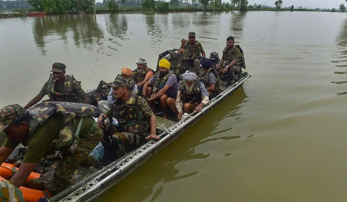 - River flood: Waterways like Sutlej and Beas crossed peril levels.